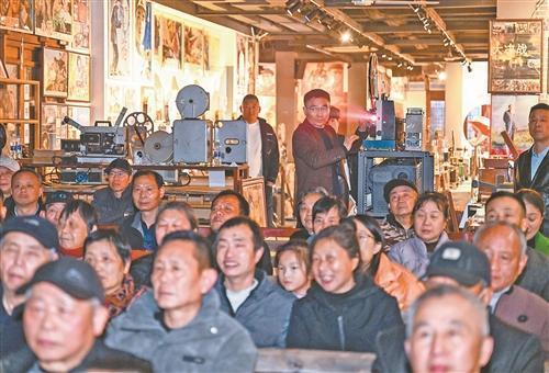 3月24日19时,樟树市鹿江街说念三皇里旅游安静街区的红色电影博物馆里,照明灯光暗去,长凳上的不雅众舒坦下来。跟着放映机“咔”的一声开动,一束光遽然亮起,在胶片“哒哒”的走带声里,泛着独有色泽的画面“流淌”在银幕——红色电影《永不用逝的电波》开场了。放映机旁,红色电影博物馆创办者张赛祥的眼神在胶片与微微能干的银幕之间,往复动弹。
