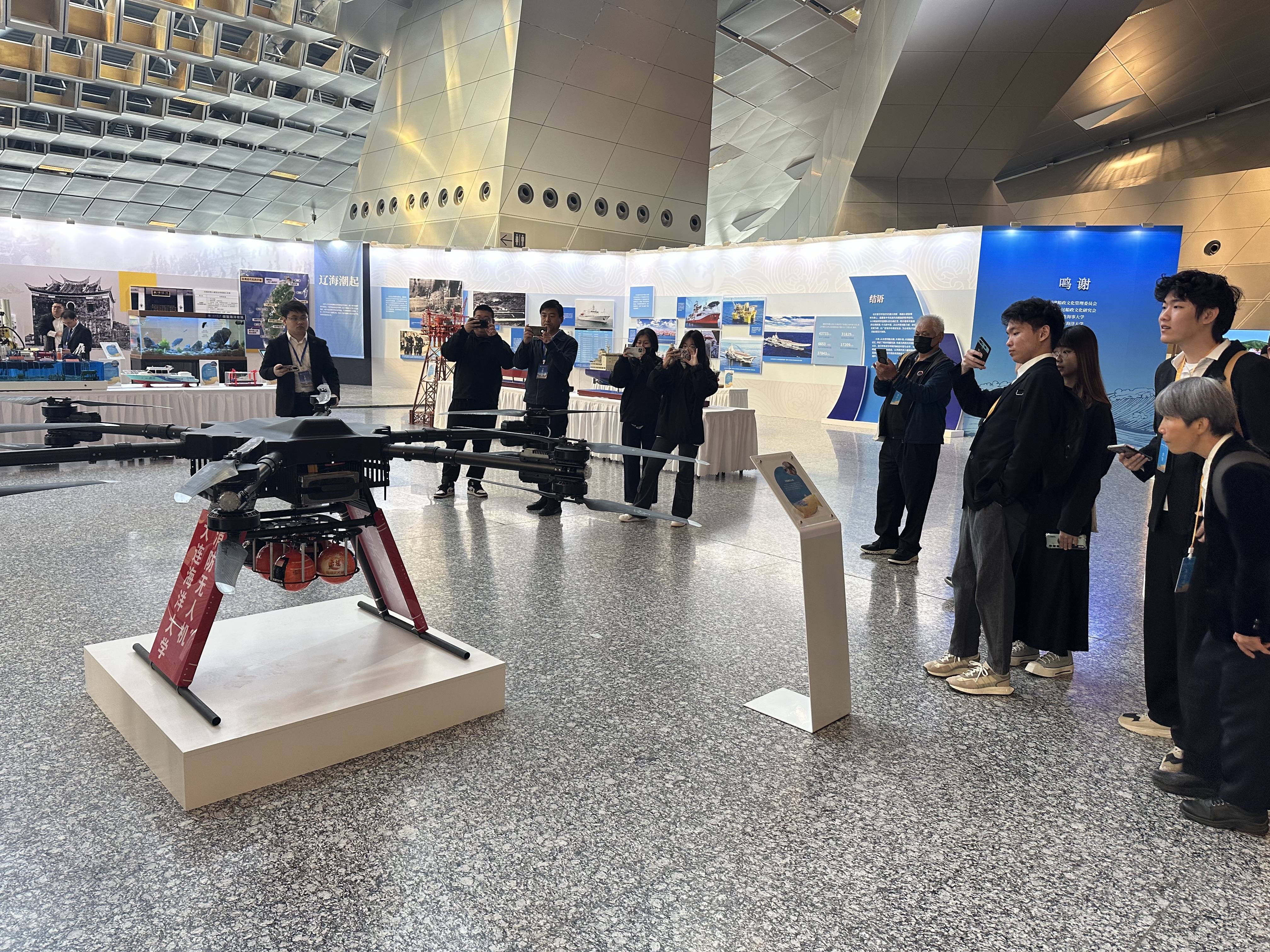 全球首制商用7500立方米液态二氧化碳运载船模子、最大抗风品级8级的大载重无东说念主机、专科南极磷虾捕捞加工船“福兴海”号船模……展出的当代海洋科技恶果令台胞们传颂不已。