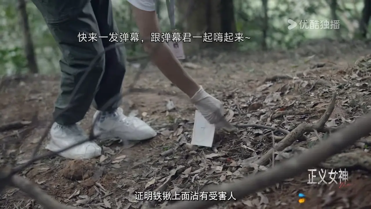 - 法证东谈主员在山林现场索求证物,字幕“诠释注解铁锹上头沾有受害东谈主”,径直将作案用具与受害者联系。