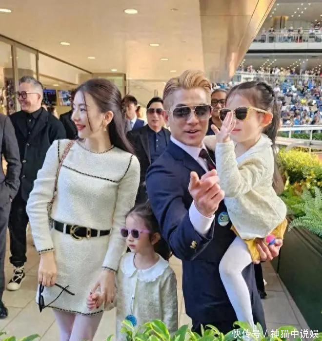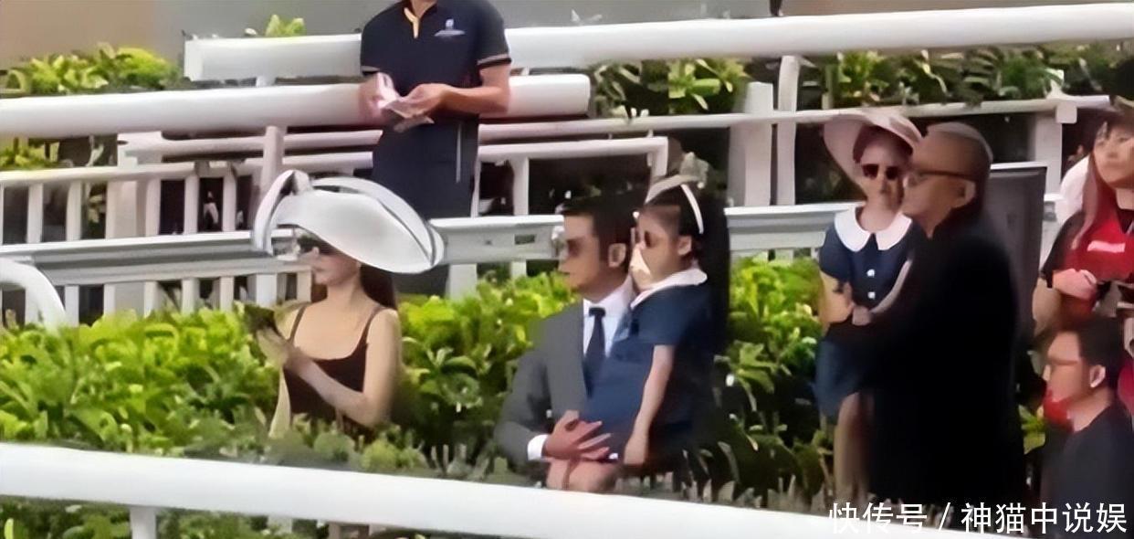 5月25日这天,方媛带着两个孩子,一说念陪郭富城去沙田马场看跑马。郭富城的马出场时各人都很夸赞,而方媛穿了一条玄色连体裙,妆容整皆,头上戴了个特别酷的帽子,看起来像个先锋贵妇。