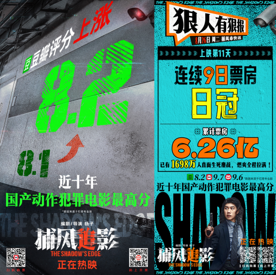 8月26日,第30届釜山国际电影节公布各单位入围片单,爱奇艺出品电影《捕风追影》致密入围“Open Cinema”展映单位,将举办露天放映,该所在可容纳5000位不雅众。现在本片正在国内热映中,上映11天中联络9日蝉联票房冠军,院线票房累计破6.5亿元,豆瓣评分涨至8.2分,稳坐近十年国产算作犯警电影评分榜首。