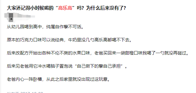 这是每一位九零后的共同顾虑。小时候它老是出目前电视告白里,插播在动画片中间:几个背着书包的孩子连蹦带跳地回到家,好意思滋滋地喝上一杯冰镇巧克力味高乐高,再用舌头舔一舔沾满巧克力酱的嘴角,深入心惬意足的神志,最终还老是少不了喊出那句,在顾虑中仍然带有声息的标语: