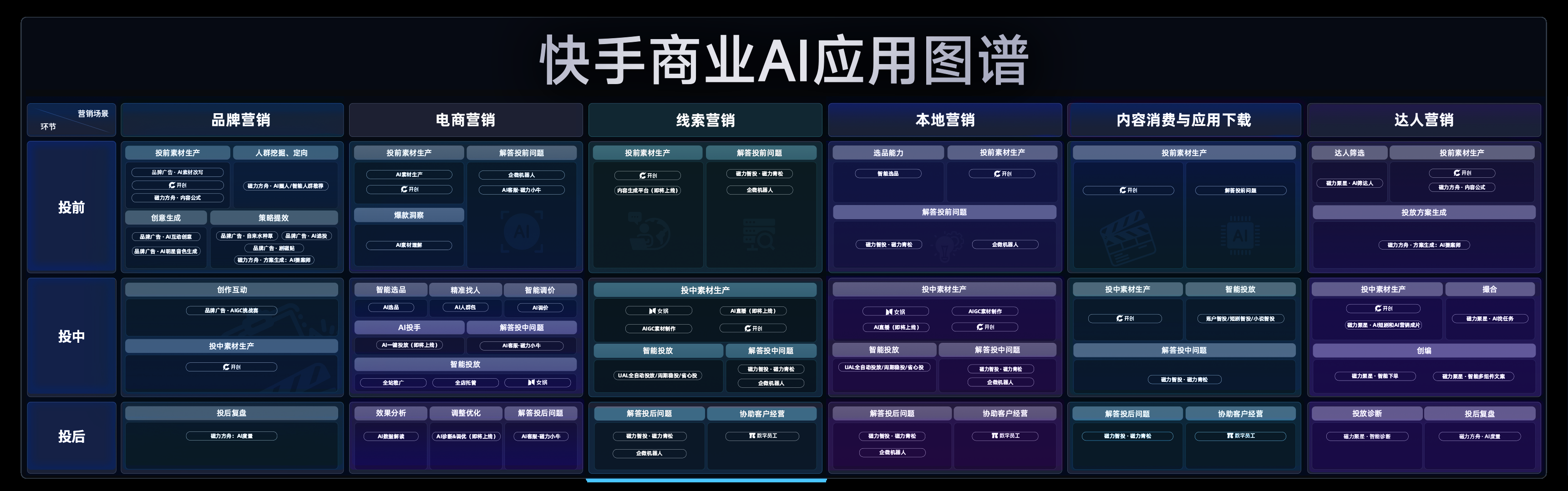 那么,快手贸易AI到底具备哪些才气?在品牌营销、电商营销、痕迹营销、土产货营销、内容消费与愚弄下载、达东谈主营销六大中枢场景下,又能为营销东谈主带来哪些实实在在的提效价值?