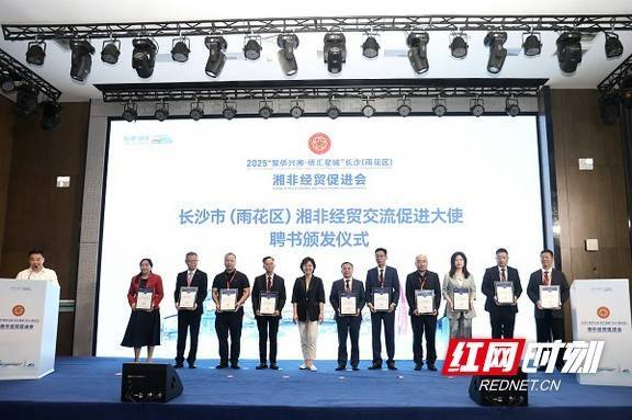 会上,雨花区作区情、招商推介,全面展示了雨花区的产业上风、营商环境和相助机遇,随后举行了签约典礼,共有8个优质神志牵手非洲。为进一步拓宽相助采集,长沙市东谈主民政府副市长钱丽霞为霍江涛等10东谈主颁发长沙市(雨花区)外洋招商大使聘书,期待借助他们的力量,助力长沙市(雨花区)贯穿更多非洲优质资源。